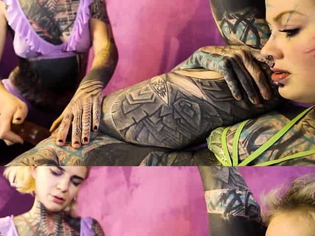Cute tattoo lesbian sex with Anuskatzz and Serpienta