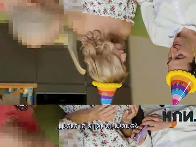 Blonde And Brunette Lesbian Girls Licking And Toying