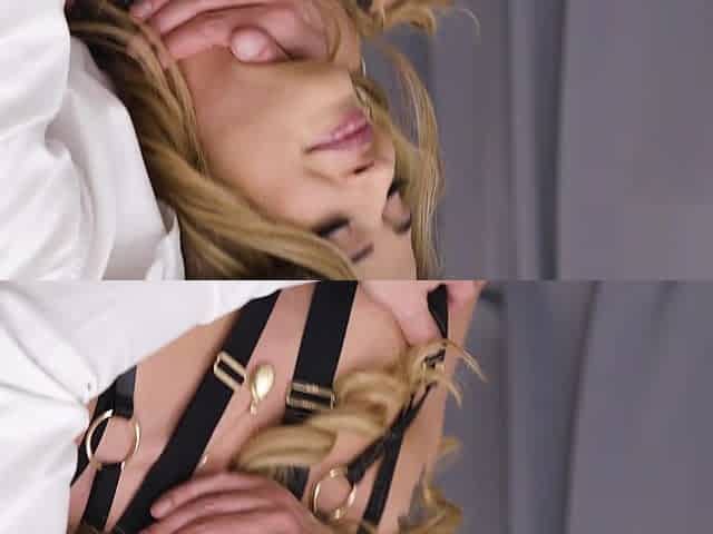 StrapOn Lesbian with big boobs fucks her blonde sexy GF