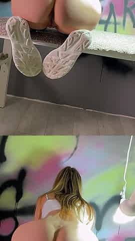 Sporty blonde Gigioficial rocking sweatpants gets her stepbrothers to lick her ass