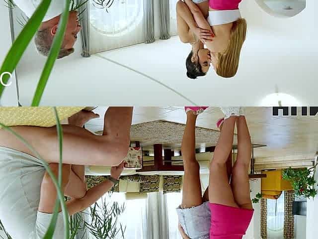 Fat old fart and nasty blonde teens 18+ enjoying trio fornication