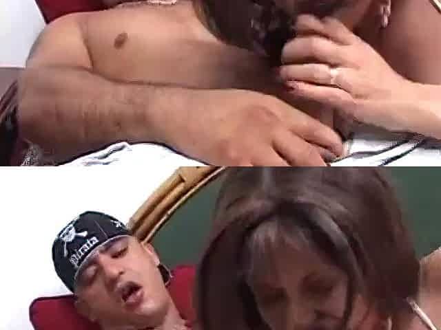 Dirty cock sucking and cummed on MILF duo