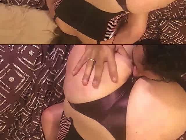 Ass licking for brunette in sexy lingerie