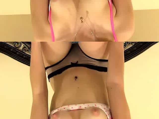 Tattooed flexi teen squeezes cum out of her holes