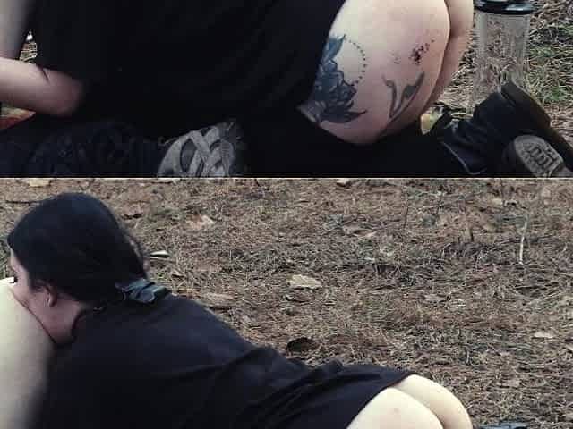 Anuskatz double anal fisting Hotkinkyjo, abdomen bulge & prolapse licking at the forest walk