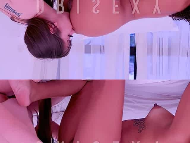 Skinny lesbians kiss and make out before getting really nasty