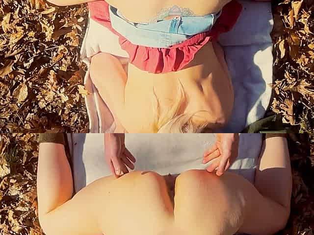 Blonde with a big booty has her ass stretched wide during outdoor anal encounter in the park and narrowly avoids being caught