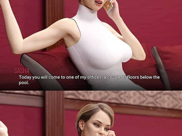Curvy brunette in an adult visual novel adventure