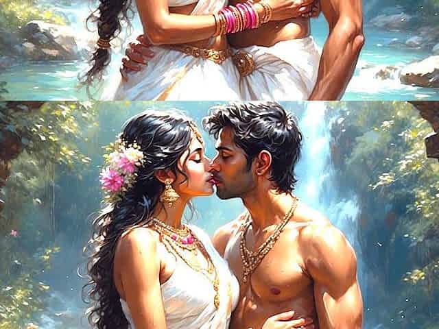 Romantic India duo making out in front of a mountain
