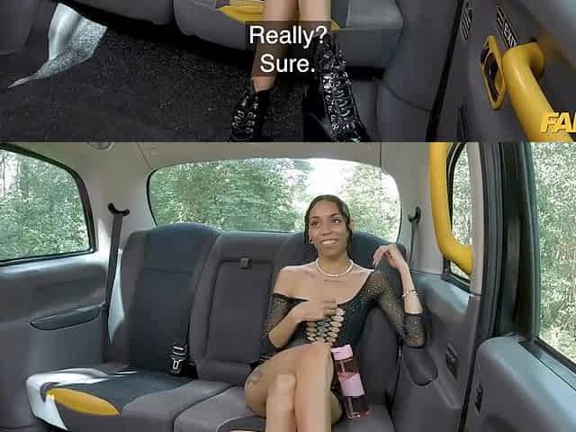 A hot slut with a juicy ass and small tits sucks a taxi driver's dick in the car