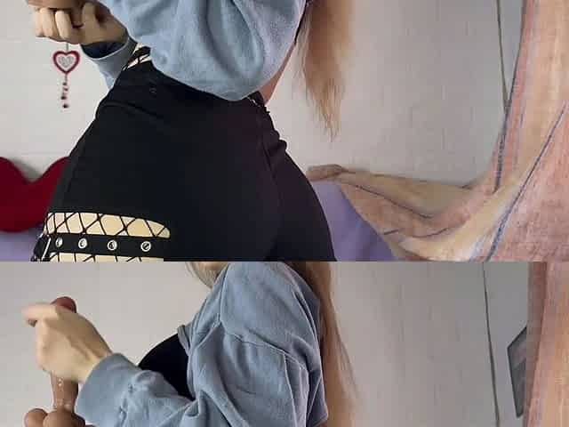 Curious Dominant-bitch - rubbing his weenie on the babe's massive booty