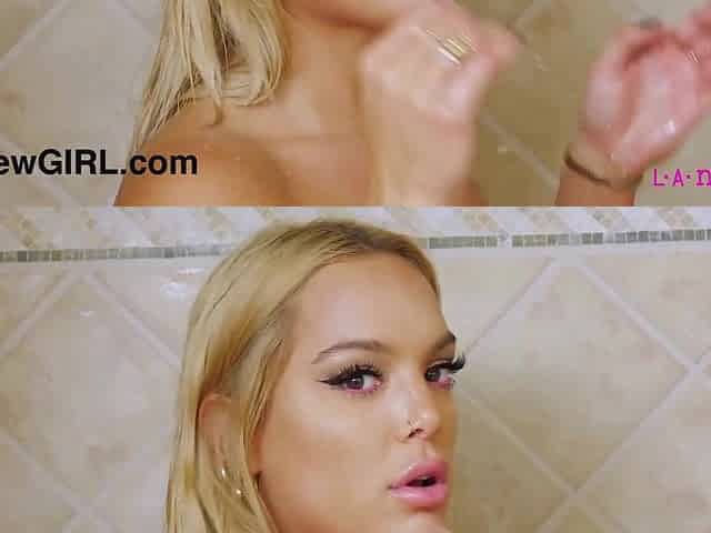 Hot blonde model took a shower