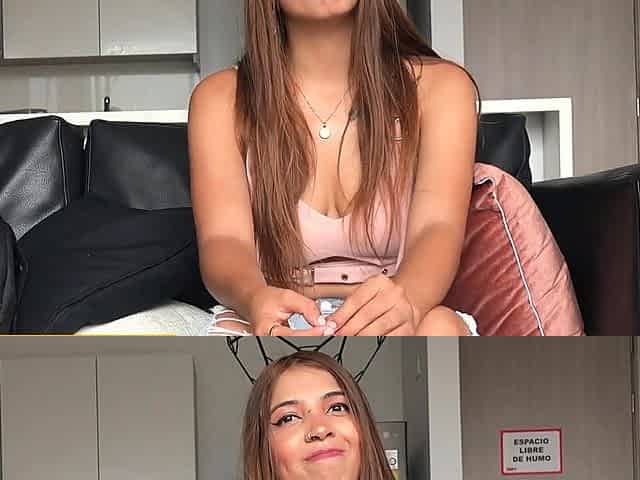 Seductive Colombian chick gets her tight pussy pounded at her first audition in lingerie