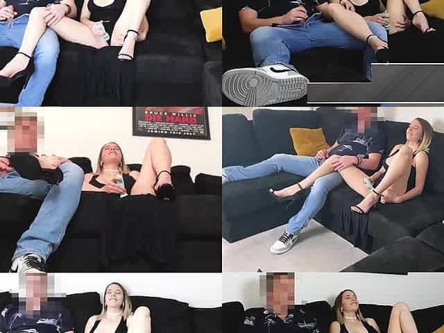 Blonde and her boyfriend show their best poses at a joint sex casting