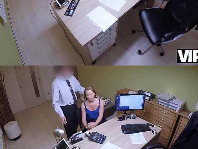 VIP4K. Die enge Muschi der Pornodarstellerin wird von Geldverleiher in seinem Büro genagelt