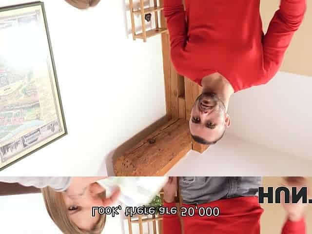 Gorgeous blonde teen whore giving awesome big cock handjob