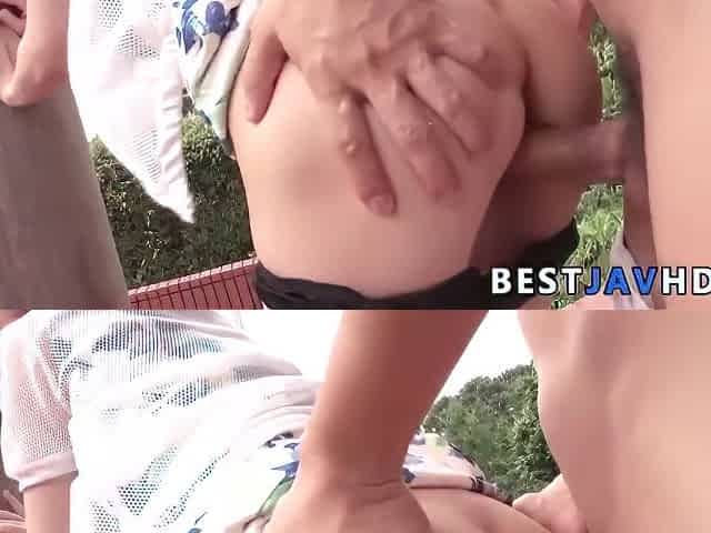 Megumi Haruka, the Horny Asian Lady, gives blowage and creampie outside - Awesome Japanese Group Sex!