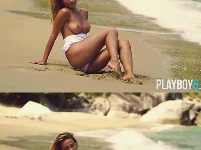 Awesome blonde with nice ass Katy Sky touches her shaved pussy