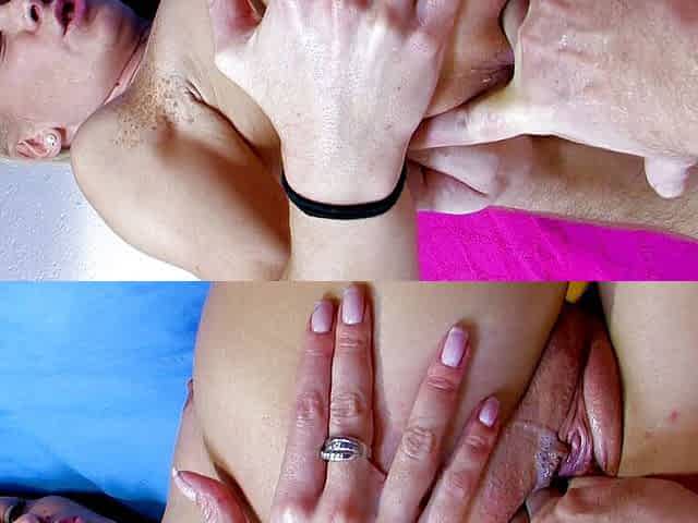 In this awesome play of colors - you can see exactly, here the pussy and there the stem...