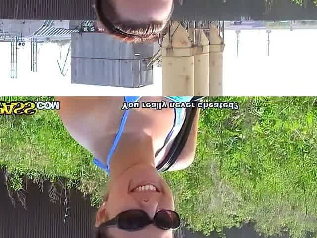 Awesome poolside fuck in the cowgirl pose with a nerdy chick Mia Marin