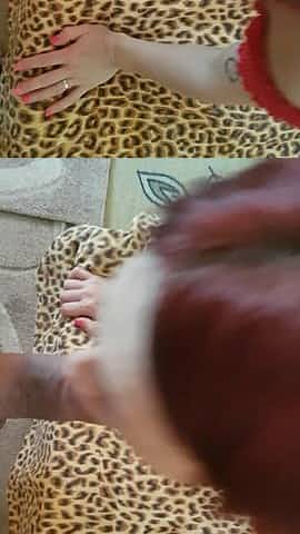 Awesome brunette babe likes to walk on black dude's dong with her high-heel shoes before playing with giant tool