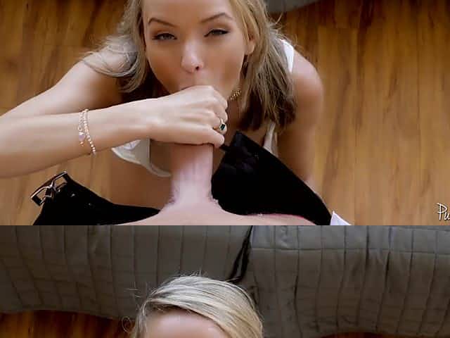 Awesome sexy blonde Mia Malkova sucks balls and deepthroats big dick