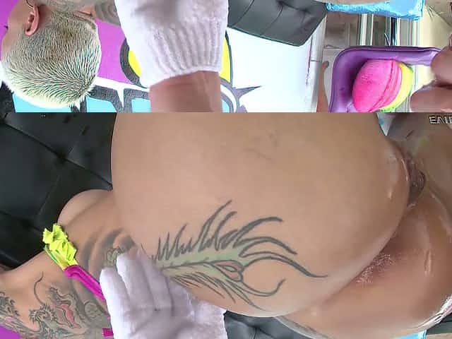 Awesome tattooed whore Bella Bellz brags of her big bubble ass and gives BJ
