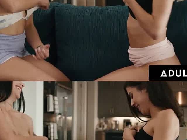 Adorable brunette hotties share awesome lesbian kinks while at home