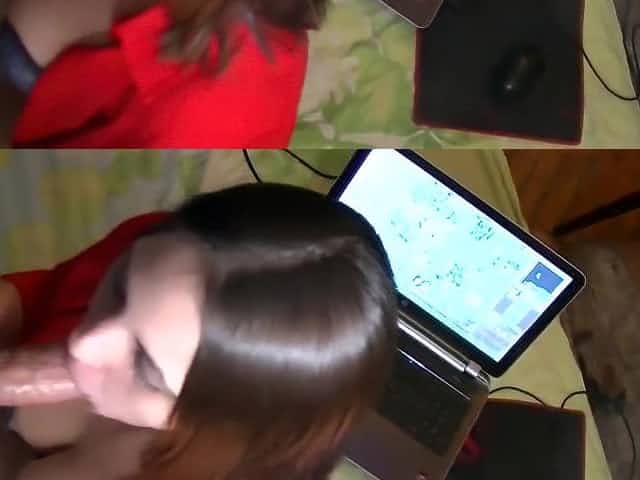 Stunning game chick takes a break and gives awesome blowjob