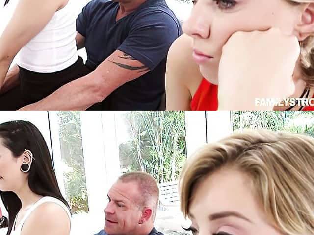 2 Awesome Brunette Girls Enjoy 1 Thick Cock