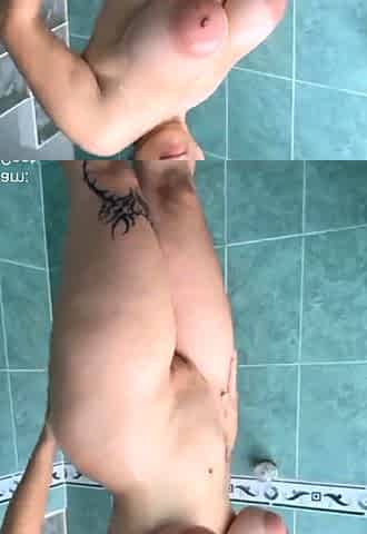 Awesome Big Boobs Blonde Masturbates In The Shower