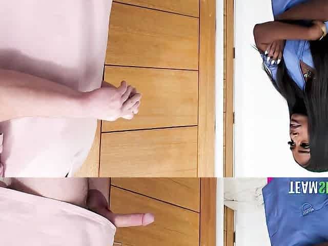 Hot And Dominant Brunette Babe Gives Awesome Handjobs And Blowjobs To A Guy