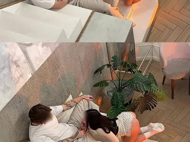 Romantic evening ended with awesome sex with a sexy brunette hair right on the stairs