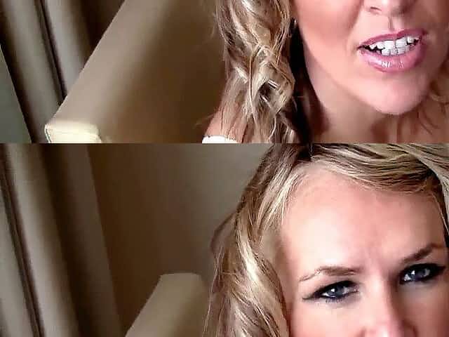 Juicy blonde is filmed from two angles at this porn interview