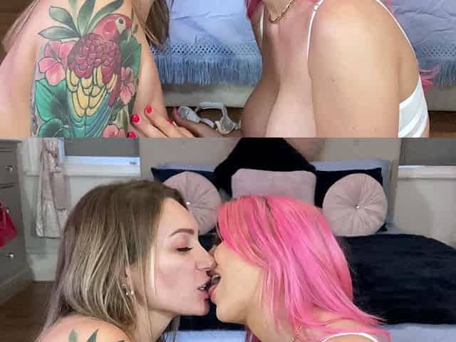 Petite lesbian babe duo licking and fingering pussy close up