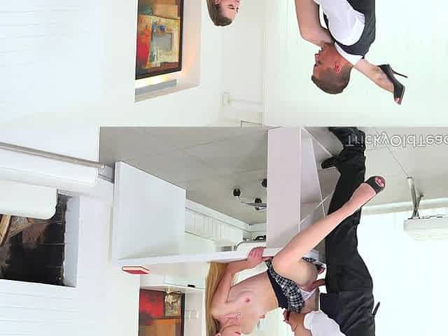 Petite Blonde Babe Sucks & Fucks Big Cock