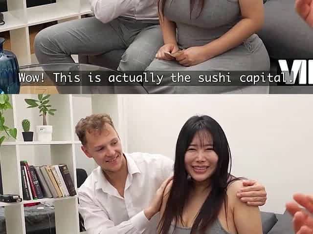 Gorgeous busty Japanese babe rides my cock for some money in front of her husband
