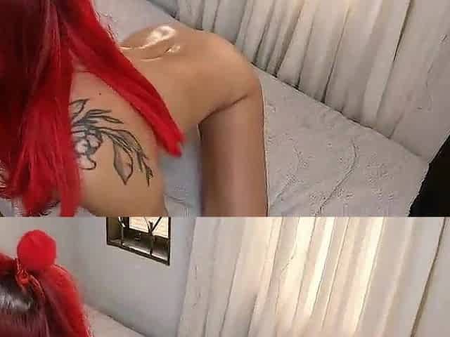 Red Bikini Babe with Big Natural Tits on Cam!