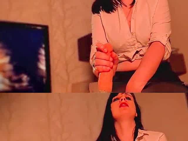 French brunette gives a hot handjob after a cozy family dinner