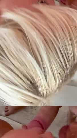 Blonde babe taking nude photos of a guy who creampies her pussy