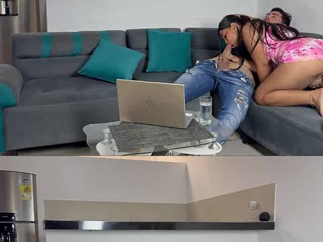 Latin babe stepsister forgotta wear pants in couch