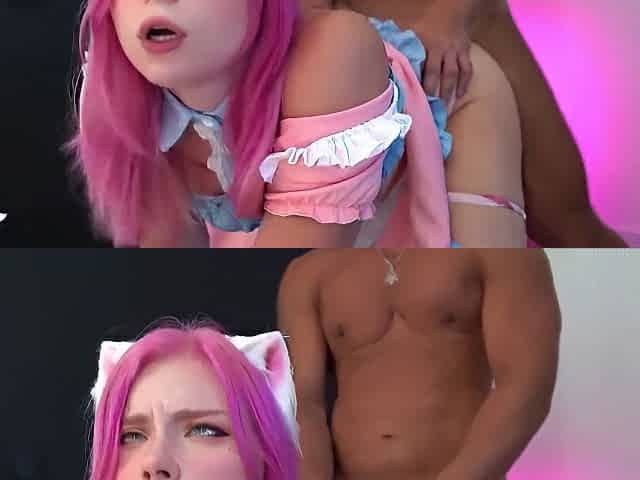 Pink Haired Beauty Deep Sucking Dick & Had Assfucking Until Cum Inside