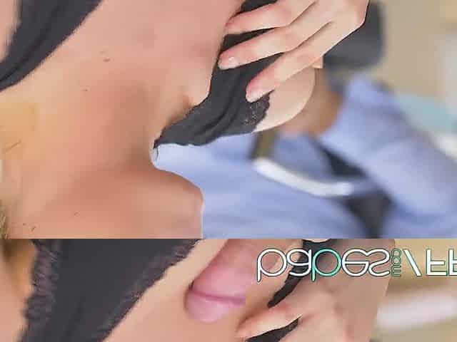 Hot Brunette Babe Gives Blowjob to a Guy With a Big Dick