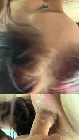 Dope bitch gives a backseat blow job during the day & lets an mature dude nut right in her throat