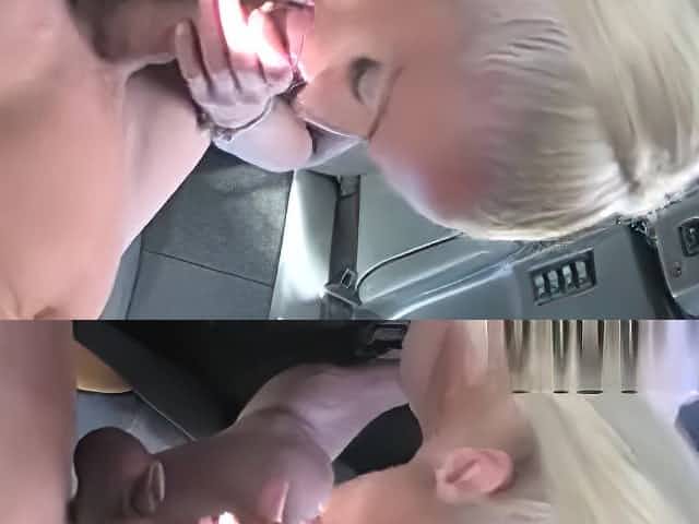 Blonde Working Two Dicks On The Sex Bus Back Seat