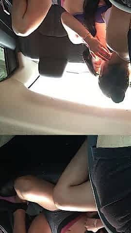 Backseat lesbian sex play with a long-legged girlfriend Sunny Day