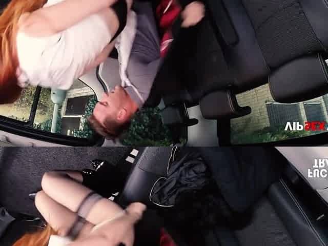 European redhead pounded by fake driver in the backseat