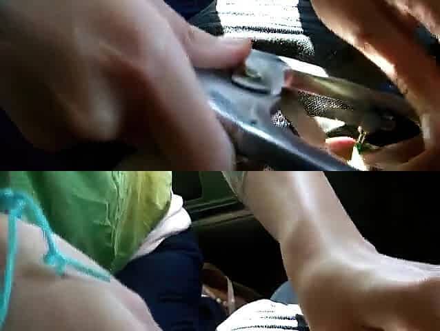 Spouse drives car whilst wife screws and gets creampie by ally in back seat