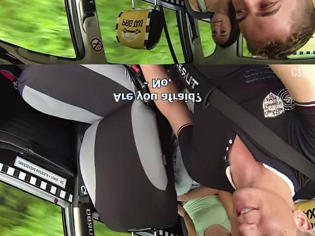 All-natural brunette is sucking a hard driver's dick on the backseat