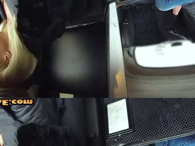 Smallboob blonde taxi driver rides passenger on a backseat
